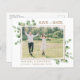 Salve a Data! Anuncie seu casamento para amigos e familiares com esses cartões de salva a data com foto moderna e folhas de eucalipto. Esses cartões-postais de convite de casamento econômicos precisam ser enviados como cartões-postais grandes, podendo incorrer em taxas de correio padrão, mas não precisam de envelope ou etiqueta de endereço de devolução. Personalize com sua foto de noivado favorita e personalize com nomes, data do casamento e local. Adicione o site e qualquer outra informação no verso. Esses cartões exclusivos de salva a data de casamento com folhagens botânicas farão uma impressão duradoura, seus convidados certamente salvarão a data! DIREITOS AUTORAIS © 2020 Judy Burrows, Black Dog Art - Todos os Direitos Reservados. Foto Econômica Salva a Data com Folhagens de Eucalipto