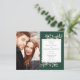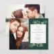 Com delicadas folhas de verde água e uma moldura dourada sobre um fundo verde esmeralda, este convite de casamento botânico elegante e econômico pode ser personalizado com suas fotos especiais e detalhes do dia do casamento. Criado por Thisisnotme©