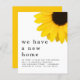 Girassol Amarelo Movendo Novos Detalhes Domésticos. Um alternativo SMALLER de 4,5" x 5,6", compatível com o orçamento, para aconselhar seu novo endereço. Disponível em um STOCK de PLACA SEMI GLOSS 110 lb ou um STOCK de PAPEL THINNER SATIN FINISH 80 lb. Os envelopes são um extra opcional. O cabeçalho é grande em na moda lowercase com os detalhes abaixo. Um girassol amarelo parcial decora o canto superior direito. Personalize facilmente o texto para seus próprios detalhes.