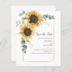 Orçamento Girassol Eucalyptus Greenery Salve o modelo do cartão de lançamento com um belo buquê floral rústico com a moderna tipografia simples. DICA: Cartões de suíte de casamento iguais, como RSVP, programas de casamento, banners, tapeçarias, etiquetas de presentes, placas e outras pegadas de casamento e guloseimas estão disponíveis na coleção abaixo com esta design.