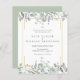 Greenery Watercolor Flóral Sage Lilac Orçamento convite para casamento com bonito sábio e folhas lilás que caem sobre um elegante quadro de ouro que envolve os detalhes do seu casamento em texto elegante clássico. Projetado por Thisnotme©