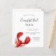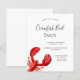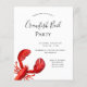 Um convite elegante para uma costa náutica pela festa de verão do mar, festa de praia ou mariscos. Um fundo branco e uma grande lagosta vermelha como decoração. Modelos para detalhes de sua parte, informações. Fundo branco.