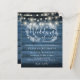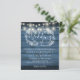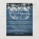 Com belas luzes de corda e uma guirlanda floral desenhada à mão, este convite de casamento rústico econômico elegante pode ser personalizado com suas informações em letras elegantes em um fundo de painel de madeira azul. Projetado por Thisisnotme©