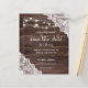 ** SATIN PAPER É PAPEL FINO. ATUALIZE O PAPEL PARA OBTER UM PAPEL MAIS ESPESADO. TEM UMA OPÇÃO PARA ENVELOPES. *** Economize dinheiro em convites formais com este convite menor que tem uma opção para envelopes. Prepare seus convidados para o maravilhoso casamento com seus Cartões salve a data Fotográficos de madeira, rendas e luzes. Quer uma versão maior? Confira a coleção Salvar Data para cartões: https://www.zazzle.com/collections/save_the_date_collection-119001127515543544?rf=238937196885903396