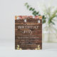 Festa de aniversário de orçamento País Russo ao ar livre em Madeira Escura com Girassóis Borgonha, Laranja e Amarelo com Mason Jars on String Light Autumn ou Fall Convites de festas de aniversários - inclui bela e elegante tipografia de roteiro para a Celebração Especial de Aniversário.