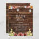 Budget Rustic Country Outdoor on Dark Wood with Burgundy, Orange and Yellow Sunflower with Mason Jars on String Light Autumn ou Fall Baby Shower Invtions - inclui uma bela e elegante tipografia de script para a celebração especial da Madre Ser.