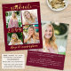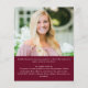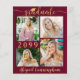 Um anúncio de formatura preto e dourado moderno e econômico, impresso em papel leve de 4,5x5,6" em vez de papel cartão, apresentando tipografia de caligrafia dourada metálica falsa e chapéu de formatura e personalizado com 5 fotos (um colagem de fotos de 4 imagens na frente e 1 no verso) na cor de fundo de sua escolha (mostrado em burgundy marrom) e/ou estilos de fonte de texto. O verso apresenta uma foto em bleed total e um campo de texto opcional para seu texto personalizado com detalhes sobre seu graduado. Ideal para orçamentos conservadores e/ou entrega manual. Os envelopes são vendidos separadamente na página de pedidos. ASSISTÊNCIA: Para obter ajuda com modificação de design/personalização, alteração de cor, transferência do design para outro produto ou se você gostaria de itens coordenados, entre em contato com o designer ANTES DE COMPRAR via Zazzle
