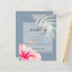 Barato Rustic Watercolor Hibiscus e Convite para Casamento Foliar | NOVO! Barato Lightweight Wedding Invtions - uma flor de hibisco tropical rosa e uma folha de filodendron folhada adorna diagonal oposta a ambos, bordada em ouro cintilante, todas colocadas sobre um fundo azul empoeirado médio com uma camada branca pura para que o texto seja facilmente lido e, no entanto, permitir que a design apresente - bela caligrafia manuscrita - fácil de personalizar modelo - design original por ©Whimsical™ para o BarefootBride ™. Esta é parte da nossa coleção de casamento Tropical de Hibiscus Watercolor, assim como Chás de fraldas, Aniversário e Convites de Natal. Para perguntas ou assistência, entre em contato com o designer indy.designer@yahoo.com.