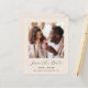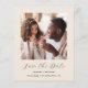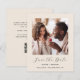 Este simples e minimalista Cartão Salvar a Data contém uma foto quadrada acima das palavras "Salvar a Data" no elegante guião preto, seguido pelos nomes dos casais, data do casamento e cidade em sans serif em um fundo bege. Adicione uma mensagem mais detalhada com informações adicionais no verso, juntamente com um código QR que envia convidados para o seu site de casamento.