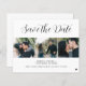 O casamento do BARATO BUDGET, elegante e elegante roteiro de caligrafia moderna preto e branco, minimalista de tendências, salve o cartão de data com uma colagem de 3 fotos. ++++++++++ Adequado para qualquer estação e tema. +++++++++ Fácil de personalizar com as suas imagens e detalhes!