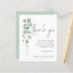Aniversário de Eucalipto Moderno Orçamento Obrigado. Um alternativo de 4,5 pol x 5,6 pol com preço inferior. Disponível em um STOCK DE CARTÃO SEMI GLOSS 110 lb, que é a opção padrão (espessura semelhante a um cartão postal recomendado para convites), OU um STOCK de PAPEL THIN SATIN FINISH 80 lb (mais adequado para gabinetes). Estilo minimalista com cor d'água verde fluindo para baixo no lado esquerdo e texto para a direita. Um script de estilo manuscrito para Obrigado e o resto do texto que você pode personalizar facilmente.