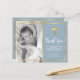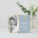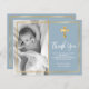 Orçamento, Elegante Dourado batizante Azul e batismo agradecemos cartões. Envie obrigados para a família e amigos com este obrigado personalizado moderno, seu cartão plano religioso. Ele apresenta o script "Obrigado", escrito à mão, em torno de dois quadros de folhas de ouro dobrados sobre fundo azul leve e empoeirado. Este belo cartões de agradecimentos fotográfico moderno também será perfeito para batismo / batizar / batizar cerimônia / confirmação e cartões de agradecimentos de comunhão sagrado para garotos ou meninas.