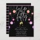 Celebre seu fabuloso aniversário de 50 anos em estilo e acessibilidade com este moderno e colorido convite de 50 anos. Design apresenta as palavras "fab & 50" em uma fonte moderna de script manuscrito com uma borda de gotas coloridas de brilho brilhando e dois copos de champanhe dourados a brindar. No fundo do cartão, são apresentados os detalhes da celebração de aniversário, que pode ser totalmente personalizada de acordo com as suas necessidades. O lado inverso apresenta um bonito padrão de brilho cor-de-rosa listrado.