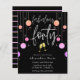 Celebre sua fabulosa aniversário de 40 anos de estilo e acessibilidade com este moderno e colorido convite para aniversário de 40 anos de brilho. Design apresenta as palavras fabuloso quarenta" em uma fonte moderna escrita à mão com uma borda de gotas coloridas de brilho e dois copos de champanhe dourados a brindar. No fundo do cartão, são apresentados os detalhes da celebração de aniversário, que pode ser totalmente personalizada de acordo com as suas necessidades. O lado inverso apresenta um bonito padrão de brilho cor-de-rosa listrado.