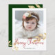 O Dourado Natal Elegante deixa Cartão com fotos de Férias Verdes. Estes cartões de natal elegantes apresentam folhas falsas de folha de ouro e uma saudação moderna de escrita. Muito espaço no inverno de na moda para sua saudação personalizada. Adicione sua própria foto para uma placa verdadeiramente personalizada. **O nosso documento sobre o ORÇAMENTO é menor, mais leve e mais delicado, mas ainda é bonito! Não se esqueça dos envelopes!** Se você precisar de ajuda ou itens correspondentes, entre em contato conosco em cedarandstring@gmail.com.