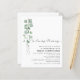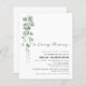 Um valor para o alternativo do ORÇAMENTO em tamanho menor de 4,5 x 5,6" de semirbrilho de 110 lbs, que é de espessura semelhante a um cartão postal (no entanto, não é adequado para uso como cartão postal). POR FAVOR, OBSERVE QUE HÁ UM convite por folha. Orçamento Em Adorável Convite Para O Eucalyptus Luncheon Script De Memória. A folhagem moderna de aquarelas está do lado esquerdo. Um estilo elegante de caligrafia para In Loving Memory e o resto do texto que você pode personalizar facilmente.