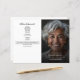 Os programas personalizados de festas funerárias com obituário e ordem de serviço oferecem uma forma digna e personalizada de honrar a vida de alguém querido. Apresentando uma foto memorial de página de cheio com um roteiro elegante e fontes serif, este modelo inclui espaço para reconhecimentos, paletreiros, floricultores e uma mensagem de tributo sincero. O layout de dentro de coordenação fornece uma ordem estruturada de serviço ao lado do espaço para um obituário escrito ou resumo da vida, fazer ideal para memoriais, cerimônias de homegação ou celebrações da vida. Este design personalizável programa funerário combina simplicidade e elegância para criar uma manutenção significativa para a família e os convidados.