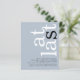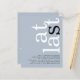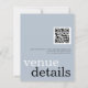 Um valor para o alternativo do ORÇAMENTO em tamanho menor de 4,5 x 5,6" de semirbrilho de 110 lbs, que é de espessura semelhante a um cartão postal (no entanto, não é adequado para uso como cartão postal). POR FAVOR, OBSERVE QUE HÁ UM convite por folha. Finalmente, Código QR Dusty Blue Texto Festa de noivado Anúncio e Convite. Um design tipográfico na moda, com Finalmente em grande tipografia girada e à direita no topo, em branco com preto para a letra "s" sobre um fundo de azul poeirento pálido. A cor do plano de fundo pode ser alterada em cada lado se você desejar por meio de Personalizar mais. Esta versão do convite é destinada às partes em mente que se realizam em um hotel ou restaurante (ou qualquer local com um site), substituem o código QR no verso por um código QR no seu website para tornar conveniente que os convidados encontrem instruções, etc. Você pode criar códigos QR gratuitamente on-line. Procure "Criador de código QR" e muitas opções surgem para criar gratuitamente. Você também pode excluir o código QR e o texto na parte traseira, se não for necessário por meio de personalização adicional.