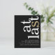 Um valor para o alternativo do ORÇAMENTO em tamanho menor de 4,5 x 5,6" de semirbrilho de 110 lbs, que é de espessura semelhante a um cartão postal (no entanto, não é adequado para uso como cartão postal). POR FAVOR, OBSERVE QUE HÁ UM convite por folha. No Último Código QR Anúncio e Convite Dourado de Festa de noivado Preta Branco. Um na moda tipográfico, com finalmente uma tipografia grande girada e à direita no topo, em branco com ouro para a letra "s" sobre um fundo de preto. A cor do plano de fundo pode ser alterada em cada lado se você desejar por meio de Personalizar mais. Esta versão do convite é destinada às partes em mente que se realizam em um hotel ou restaurante (ou qualquer local com um site), substituem o código QR no verso por um código QR no seu website para tornar conveniente que os convidados encontrem instruções, etc. Você pode criar códigos QR gratuitamente on-line. Procure "Criador de código QR" e muitas opções surgem para criar gratuitamente. Você também pode excluir o código QR e o texto na parte traseira, se não for necessário por meio de personalização adicional.
