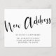 Cartão de Anúncio de Mudança Moderno e Simples com Caligrafia Negrito Endereço Novo... A caligrafia moderna em negrito exibe sua mensagem "Novo Endereço". Seu nome e novo endereço são exibidos logo abaixo deste anúncio. O verso do nosso cartão de mudança de endereço minimalista acessível contém todos os detalhes atualizados que sua família e amigos precisarão para manter contato. O texto de exemplo na frente e no verso (exceto pelo gráfico "Novo Endereço") pode ser facilmente revisado no modelo de personalização.