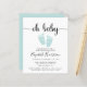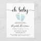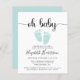 Bonito convite para chás de fraldas, neutro em termos de gênero e favorável ao orçamento, com "oh baby" em um roteiro de na moda com baloiços e uma cor verde de menta pastel de pés de bebês. Personalize facilmente os detalhes do chá.
