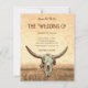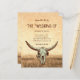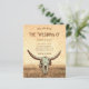 Orçamento do país ocidental Vintage beige castanho antigo estilo de vaqueiro. Cartões planos do orçamento de casamento. Convites de crânio de vaca em touro. Design de uma fazenda bonita. A tipografia pode ser personalizada. Velho oeste selvagem, único. animal legal, de moda fazenda. Imagem copyright Marg Seregelyi Fotografia.