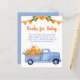 Este adorável e adorável "Books" de Abóbora com cartão de bebê com um carrinho azul-d'água carregado com abóboras laranja seria perfeito para incluir com seus convites de chá/borrifador! É fabuloso para um chá de fraldas de outono ou de colheita/aspersão. Ele tem um dorso azul macio coordenado com pequenas bolinhas brancas. Tão fofo por pedir aos convidados que tragam um pacote de fraldas para o doce bebê que você está acolhendo.