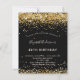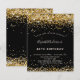 Um convite moderno, na moda e glamouroso para uma festa de aniversário 40ª (ou qualquer idade). Um fundo preto decorado com poeira falsa dourada. O nome é escrito com um moderno estilo escrito à mão. Personalize e adicione os detalhes da sua festa.