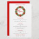 Orçamento Poinsettia Wreath Natal Menu. Um preço orçamentário de 5,5" x 8,5", em uma elegante estoque LINEN de 110 lb - para uma sensação de luxo pelo valor do excelente, isso é perfeito para menus, além de convites e programas, etc. Este alternativo de tamanho de orçamento também está disponível em outras opções de papel. O estoque do cartão SEMI-GLOSS de 110 lb tem aproximadamente a mesma espessura do cartão postal, portanto também funciona bem para convites. O papel FELT de 100 lbs é colorido por buff, NÃO branco, então adiciona um toque rústico. O estoque de papel MATTE de 80 lb é branco brilhante, para impressão nítida, excelente para seus menus e programas, enquanto o papel SATIN de 80 lb é fino e leve, ideal para gabinetes. NOTE QUE OS ENVELOPES OPCIONAIS SÃO UM POUCO MAIORES EM TAMANHO A 6,75" x 9" aproximadamente. Com os casamentos de Feriado em mente, este elegante design tem uma bela coroa de Natal com poinsetos vermelhos no topo com o título Menu no interior e a tipografia na moda. Personalize facilmente o texto para seus próprios detalhes, o que inclui alternativos para suas opções de vegan. Um Red Christmassy coordenado está nas costas. Você também pode alterar estilos e cores de texto, bem como as cores de fundo, por meio da opção personalizar mais, se desejar.