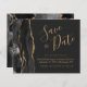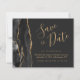 Este elegante orçamento salva a placa de data apresenta uma borda agata preta, cortada com falso brilho dourado. O texto personalizável combina um script de manuscrito colorido dourado, fontes copperplate e itálico em um fundo de cinza de carvão. O verso apresenta um design de agate preto e dourado correspondente.