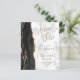 A borda esquerda deste cartão elegante de save the date de casamento moderno apresenta uma borda de ágata em aquarela preta aparada com brilho dourado falso. O texto personalizável combina escrita à mão preta dourada, fontes copperplate e itálicas em um fundo de mármore cinza e branco. O verso apresenta um design de ágata preto e dourado correspondente.