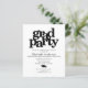 Sinta-se orgulhoso, alegre e anuncie ao mundo que seu graduado favorito alcançou sua meta com este convite de festa simples, moderno e personalizado dentro do orçamento. Tipografia preta, ousada e gráfica e ícone de chapéu sobre um fundo branco moderno e imaculado. Personalize o texto personalizado com o nome do graduando, escola, ano de formatura e informações da festa. Garantido para adicionar diversão sofisticada à ocasião especial deles!