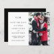 Simples guarde a data com um design moderno, mas elegante, com seu monograma de duas letras e seus detalhes de casamento em preto sobre um fundo branco. À direita está sua foto vertical favorita. As fontes podem ser alteradas para qualquer cor desejada. Um design chic e na moda que é excelente para um casal minimalista.