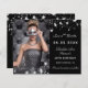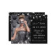 Uma foto Salve a data de um aniversário de 30 (ou qualquer idade) Na frente: adicione uma foto de tamanho vertical. Uma cor preta clássica de fundo, decorada com estrelas falsas de prata. Personalize e adicione um nome e detalhes. Cartas brancas.
