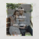 Um convite de casamento de fotos multifunções moderno e moderno que mostra suas informações de casamento sobre uma de suas fotos favoritas com uma camada transparente preta e realçada por um roteiro elegante, mas com um olho no orçamento. Facilmente personalizável com seus detalhes da cerimônia de casamento em branco para um olhar romântico, porém moderno e na moda. A parte de trás do cartão apresenta uma segunda imagem, as instruções de RSVP online e a data de vencimento, um Código QR personalizável para direcionar seus convidados para seu site de casamento, seus monogramas e sua data de casamento.