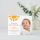Convide familiares e amigos para a sua primeira festa de aniversário com este convite de orçamento para o 1º aniversário. Ele é decorado com um sol em aquarela e diz "Primeira viagem ao redor do Sol!"