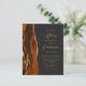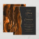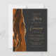 A borda esquerda deste elegante convite de casamento moderno apresenta uma cor de água laranja queimada, aparada com falsa brilho dourado. O texto personalizável combina o script dourado e as fontes sans serif em um fundo preto de slate. O verso apresenta uma design de cor laranja queimada e dourada.