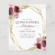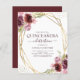 Budget Burgundy e Blush Pink Moderno e Elegante Faux Gold Foil Frame Floral Watercolor Primavera Quinceanera 15 Birthday Celebration Invances - inclui belos e elegantes escritos tipográficos com flores botânicas modernas e verde para a celebração especial do décimo quinto aniversário.