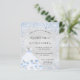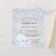 Para uma elegante Quinceañera, 15. Um fundo metálico falso prateado. Decorado com poeira azul esfolada e um vestido para uma festa de maravilha do inverno. Personalize e adicione um nome, idade e detalhes da festa. O nome é escrito com um script de estilo manuscrito