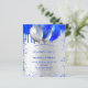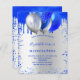 Um fundo de olhar mal prateado. Decorado com brilho azul real pingando pintura pingando aparência, faíscas e balões. Personalize e adicione um nome e detalhes da parte. O nome é escrito com um script de estilo manuscrito.