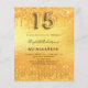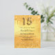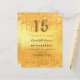 Um convite moderno, na moda e glamouroso para uma Quinceañera, festa de aniversário 15. Um fundo metálico de ouro falso com pingos de brilho falso, aparência de pingar tinta. O nome é escrito com um moderno estilo escrito à mão. Personalize e adicione os detalhes da sua festa. O número 15 é escrito com uma fonte de estilo balão, script.