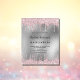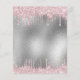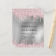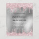 Um convite moderno, na moda e glamouroso para uma Quinceañera, festa de aniversário 15. Um fundo metálico prateado com aspecto elegante com um brilho brilhante, cor-de-rosa, pingando tinta. O nome é escrito com um script estilo preto moderno, escrito à mão. Personalize e adicione um nome, idade e detalhes da festa.