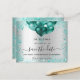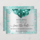 Uma garota e moda Salve o cartão de data para uma Quinceañera, 15 festa de aniversário. Um fundo com aparência de prata falsa, decorado com pó de cinza verde e poeira brilhante verde. Personalize e adicione uma data e nome/idade. O texto: Salvar a Data é gravado com um script de estilo com letra de tendência grande.