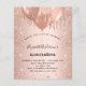 Para uma elegante Quinceañera, 15. Um fundo de aparência metálica falsa rosa dourado. Decorado com rosa dourado, brilho rosado, aspecto de pingar tinta e balões. Personalize e adicione um nome e detalhes da parte. O nome é escrito com um script de estilo manuscrito