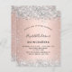 Para uma elegante Quinceañera, 15 festa de aniversário. Um fundo de aparência metálica falsa rosa dourado. Decorado com falso brilho prateado. Personalize e adicione um nome e detalhes da parte. O nome é escrito com um script de estilo manuscrito