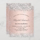 Para uma elegante Quinceañera, 15 festa de aniversário. Um fundo de aparência metálica falsa rosa dourado. Decorado com falso brilho prateado. Personalize e adicione um nome e detalhes da parte. O nome é escrito com um script de estilo manuscrito