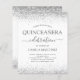Os Convites de festas de Celebração de Silver e White Faux Glitter Sparkle Girly Quinceanera incluem bela e elegante tipografia de roteiro para a celebração especial de 15.