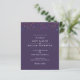 Um convite de casamento de orçamento com um arco-íris colorido fica acima de seus detalhes especiais de convite para comemoração de casamento, em na moda elegante tipografia branca moderna em um fundo roxo. O reverso apresenta sua própria foto especial. Projetado por Thisnotme©
