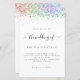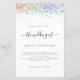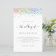 Convocação Branca De Casamento De Arco-Íris. Um alternativo maior de 5,5" x 8,5" a um preço orçamentário. Disponível em um STOCK DE CARTÃO SEMI-GLOSS 110 lb ou em um STOCK DE CARTÃO INCORPORADO LINEN (ambos recomendados para convites), há também algumas opções de PAPEL MAIS FINO (que são ideais para gabinetes). NOTE QUE OS ENVELOPES FORNECIDOS SÃO UM POUCO MAIORES DO QUE O CONVITE DE 6,75" x 9" aprox. Uma borda de falso brilho está em cada lado e O Casamento de em um script de escrita manual. Personalize facilmente o texto para seus próprios detalhes. Você também pode alterar as cores do texto e do plano de fundo por meio da opção personalizar mais, se desejar.