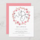 Nós Fazemos Convite De Casamento De Frame Floral. Um alternativo de 4,5 pol x 5,6 pol com preço inferior. Disponível em um STOCK DE CARTÃO SEMI-GLOSS 110 lb, que é a opção padrão (mais espesso para convites), OU um STOCK de PAPEL THINNER FINISH 80 lb FINISH (ideal para gabinetes). Os envelopes são um extra opcional e são ligeiramente maiores que o tamanho da placa. Escrito manual informal, script de conjunto de estilos Nós nos sentamos suavemente dentro de uma linha circular artística decorada com flores rosa-d'água. O resto do texto abaixo pode ser facilmente personalizado. Um fundo cor-de-rosa coordenado está atrás. As cores de texto e de fundo podem ser alteradas se você quiser se adequar melhor ao seu tema de casamento através da opção personalizar mais.